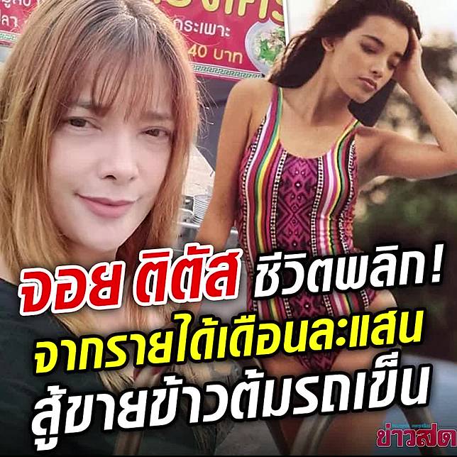 พลิกชีวิต อดีตนางแบบสาว จอย ติตัส ผันตัวเป็นแม่ค้าข้าวต้ม ลั่น ไม่เคยอาย bright จอย ติตัส โดนโควิดพลิกชีวิต จากอดีต. ซึ่งล่าสุด จอย ติตัส ได้เปิดใจกับรายการ ทุบโต๊ะข่าว ช่องอมรินทร์ทีวี ว่า ก่อนหน้านี้ทำงานอยู่เบื้องหลัง เกี่ยวกับการถ่ายแบบ กอง. หลายคนอาจจะคุ้นหน้ากันบ้าง สำหรับอดีตนางแบบชื่อดังยุค 90 อย่าง จอย ตีตัส ที่หลายคนรู้จักกันดี และคงคุ้นเคยตามหน้าปกนิตยสารชื่อดังของเมือง. สัมภาษณ์มาได้ถึงตรงนี้ จอย ติตัส ภรรยาคนเก่ง ก็เดินเข้ามา เราจึงถือโอกาส พูดคุยถึงเรื่องราวชีวิตรักของทั้งคู่กันบ้าง. โควิดพลิกชีวิต อดีตนางแบบสาว จอย ติตัส ผันตัวเป็นแม่ค้าข้าวต้ม ลั่น ไม่เคยอาย.